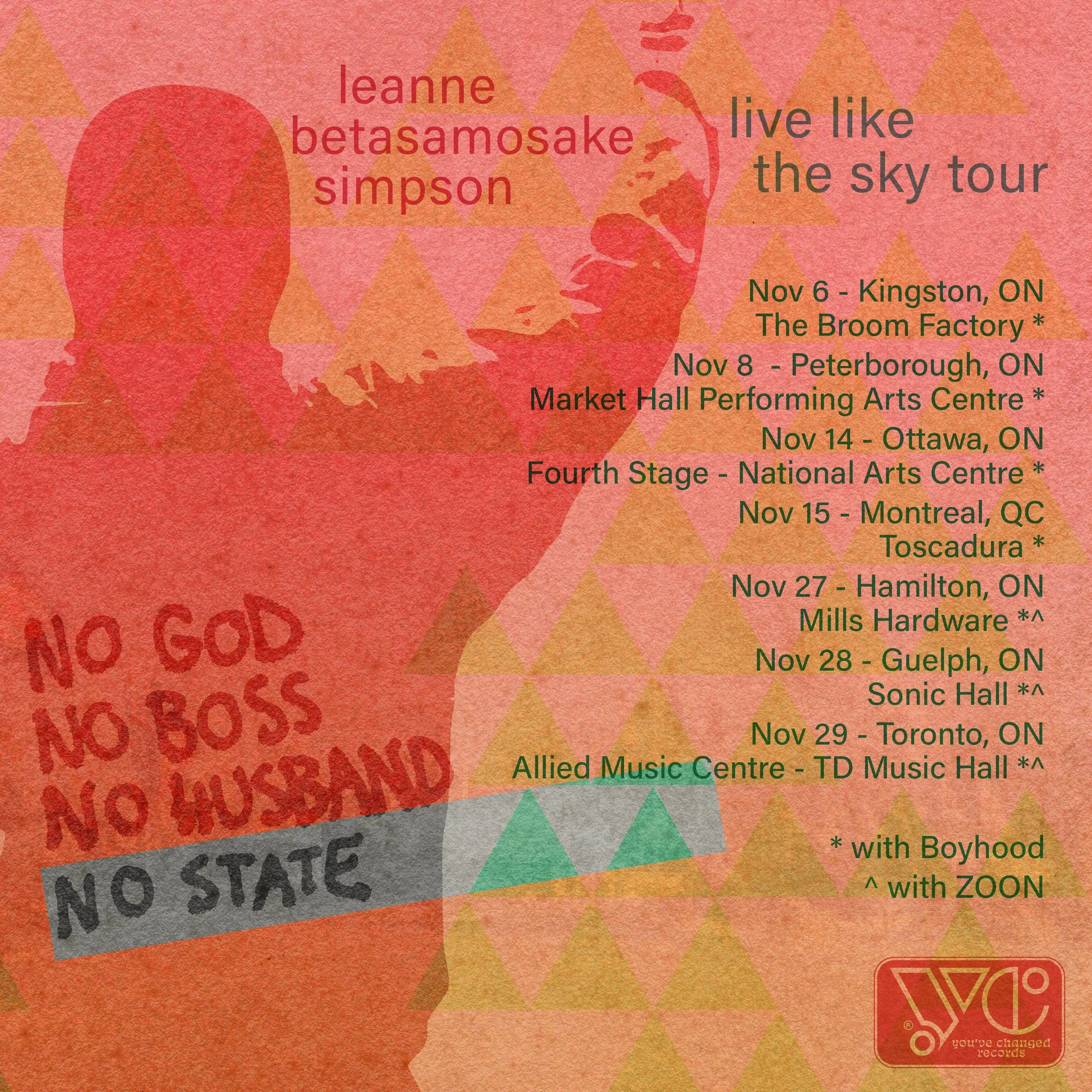 Leanne Betasamosake Simpsonwriter | academic | musician About Events Contact rana nazzal hamadeh x leanne betasamoske simpson BOOKSTheory of WaterRehearsals for LivingNoopimingA Short History of the BlockadeAs We Have Always DoneThis Accident of Being LostIslands of Decolonial LoveThe Gift Is in the MakingDancing on Our Turtle’s BackMUSICLive Like The SkyTheory of Icef(l)ightNoopiming SessionsUnder Your Always Light (single)FILMSWhite Kites And Sky BlueMurder of CrowsI Pity the CountryBreak UpHead of the LakeViscosityOK IndictsSolidificationBiidaabanHow to Steal A CanoeUnder Your Always LightThis Accident of Being LostThe Oldest Tree in the WorldLeaks Live Like The Sky by Leanne Betasamosake Simpsonnew full length LPLive Like The Skydrops 24/10/2025You’ve Changed Records asinnaq x leanne betasamosake simpson Press Kit